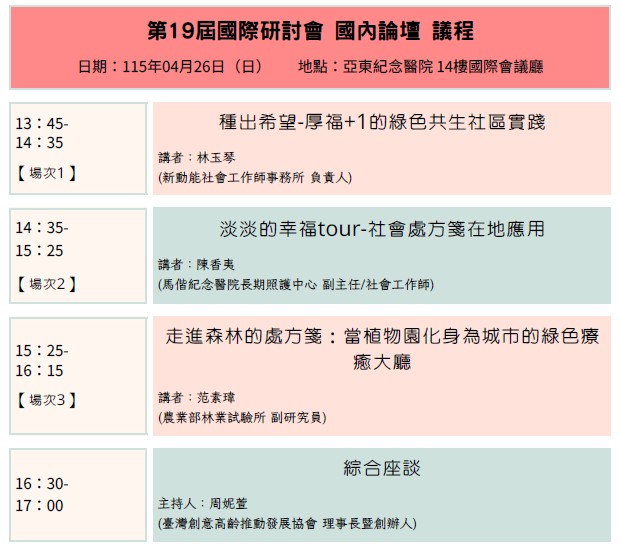 (單場報名 - 國際研討會)2026/04/25-26第19屆園藝治療國際研討會暨國內論壇