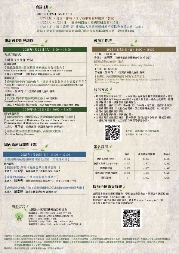 (大會套裝組合)2026/04/25-26第19屆園藝治療國際研討會暨國內論壇