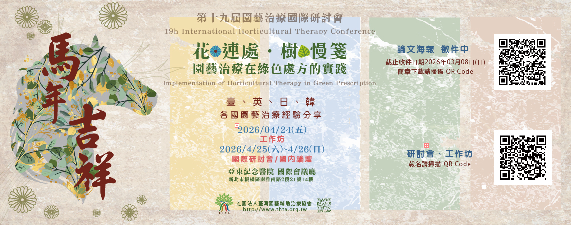 2026/04/24-04/26第19屆園藝治療國際研討會暨會前工作坊「花連處、樹慢箋:園藝治療在綠色處方箋的實踐」